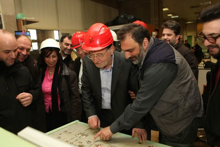 Unser Foto (© Eurokinissi) zeigt Lafazanis während eines Besuches beim griechischen Erzeuger für Elektroenergie (DEI) am 24. März im makedonischen Kozani.