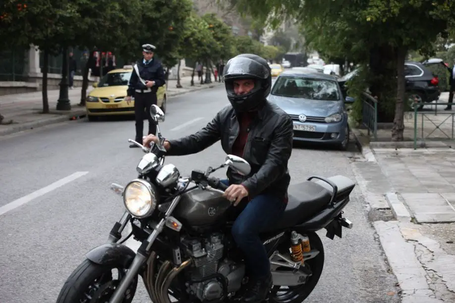 Unser Archiv-Foto zeigt Minister Varoufakis, einen begeisterten Motorradfahrer, als er am 27. März nach einen Besprechung mit Premierminister Alexis Tsipras dessen Amtssitz verließ. Gesprächsthema war damals die Liste der Reform-Maßnahmen, die die Regierung kurz darauf der Eurogruppe vorlegte.