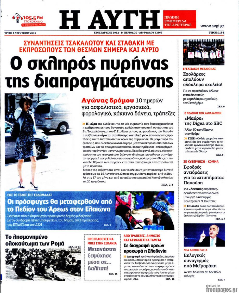 Heute: Titelblatt der griechischen Tageszeitung „Avgí“ (SYRIZA): „Der harte Kern der Verhandlung“