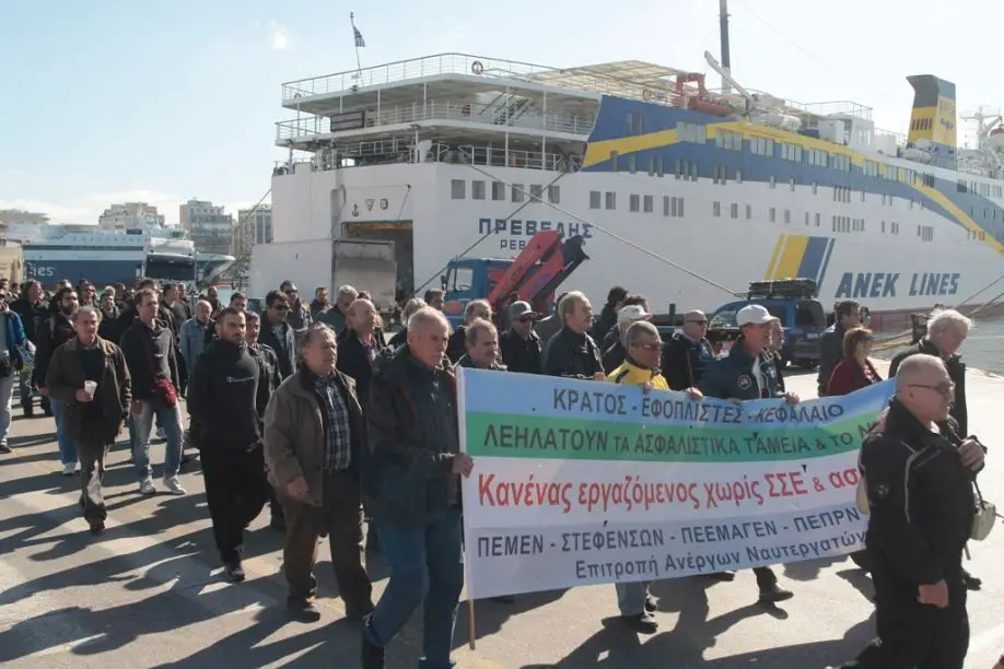 Zeitgleich bleiben am Montag und Dienstag die Schiffe landesweit in den griechischen Häfen vor Anker. Hintergrund ist ein Streik der Panhellenischen Seemannsgewerkschaft PNO. Die Gewerkschafter haben auch die Mitarbeiter auf jenen Passagierschiffen, die Flüchtlinge von den Agäis-Inseln nach Piräus transportieren, dazu aufgerufen, sich am Ausstand zu beteiligen. Der Seemannsprotest richtet sich u. a. gegen die niedrigen Renten, sowie gegen die steigende Arbeitslosigkeit in der Zunft. Gestreikt wird in diesem Sinne auch gegen die Schwarzarbeit sowie gegen eine „permanente Verschlechterung der Arbeitsbedingungen“. Einige Medien sprechen davon, dass dieser Protest lediglich als ein Warnstreik zu verstehen sei.