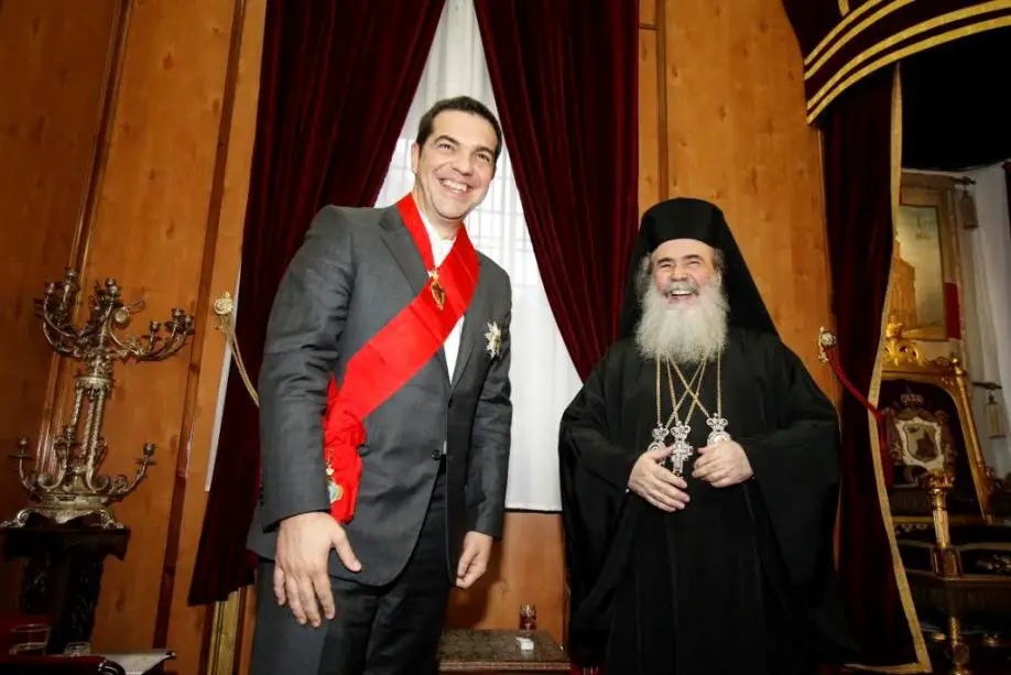 Unser Foto (© Eurokinissi) zeigt Ministerpräsident Alexis Tsipras am Donnerstag während eines Besuches des Griechischen Patriarchats von Jerusalem.