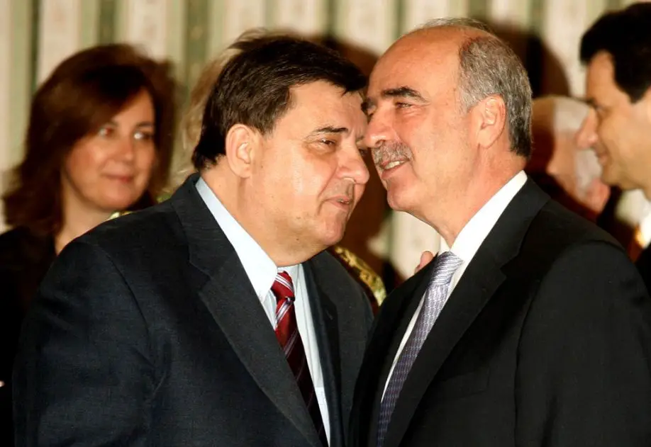 Unser Archivfoto (© Eurokinissi) zeigt Karatzaferis (l.) gemeinsam mit dem früheren Parlamentspräsidenten und ND-Vorsitzenden Evangelos Meimarakis.