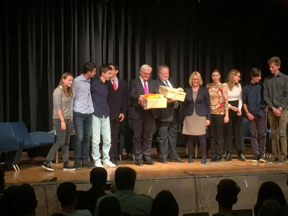 Mit einer kleinen Anekdote startete Steinmeier in das Gespräch, er freue sich sehr an einer Begegnungsschule sein zu dürfen, schließlich passe dies auch sehr gut zu ihm und Kotzias. Nicht nur, dass sie in derselben Stadt gewohnt und studiert hätten, auch in denselben Kneipen hätten sie damals in den 70ern Bier getrunken. „Manchmal hilft es auch, dass man eine gemeinsame Vergangenheit hat und gemeinsame Erlebnisse, Erfahrungen hat, wie wir beide sie haben“.
