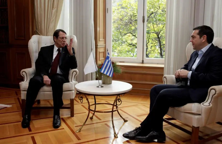 Unser Archivfoto entstand am 30. Dezember 2016 während einer Beratung zwischen Ministerpräsident Alexis Tsipras (rechts) und dem zyprischen Präsidenten Nikos Anastasiadis in Athen.