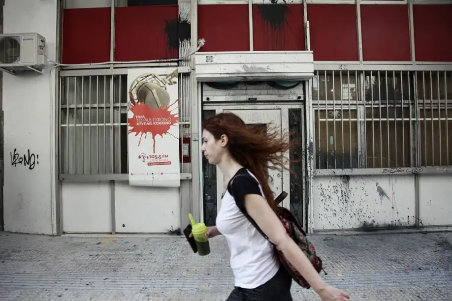 Eine Gruppe unbekannter Personen hat Donnerstagabend gegen 22.30 Uhr Farben gegen das Gebäude geworfen, in dem der Radiosender „Sto Kokkino“ untergebracht ist.