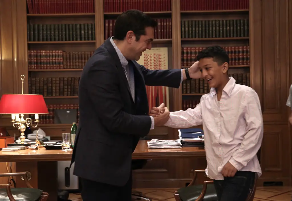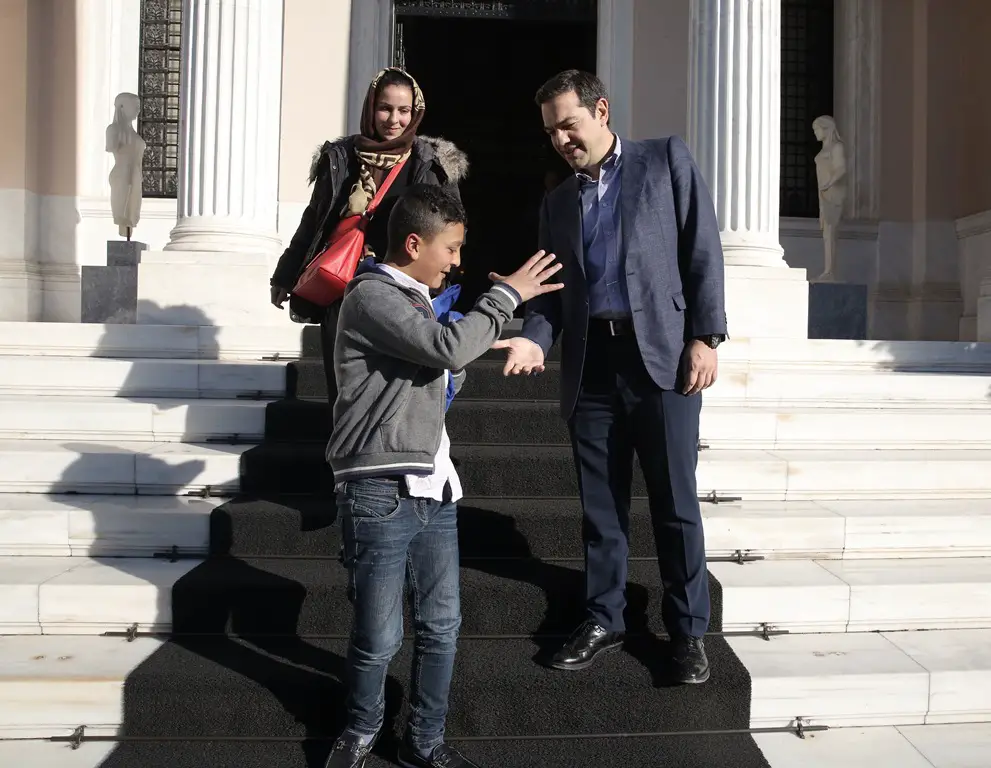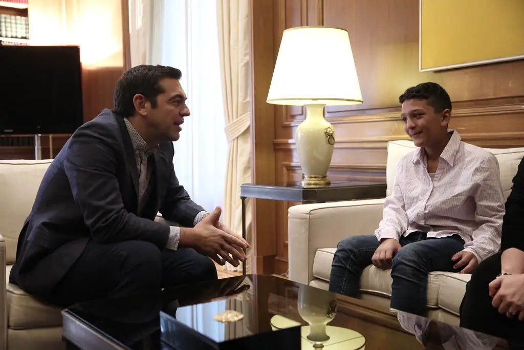 Ministerpräsident Alexis Tsipras hat sich am Samstag in seinem Amtssitz, dem Megaron Maximou, mit einem 11jährigen Schüler getroffen. Es handelt sich um Amir aus Afghanistan. Der Junge war anlässlich des griechischen Nationalfeiertages am 28. Oktober per Losentscheid ausgewählt worden, die griechische Flagge während der traditionellen Schülerparade zu tragen. Ohne Nennung von Gründen wurde ihm stattdessen ein kleines Transparent mit dem Namen seiner Schule „6. Grundschule“ in die Hand gedrückt.
