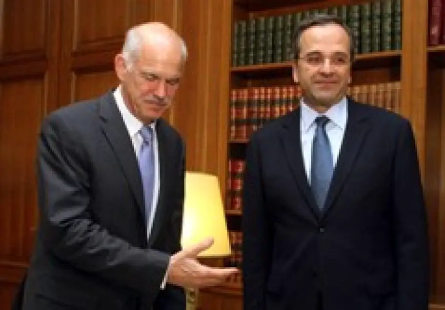 Griechenland/Athen. Antonis Samaras (Foto: r.), Vorsitzender der