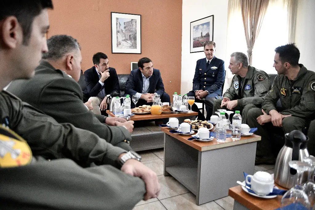 Ministerpräsident Alexis Tsipras befand sich am Donnerstag zu einem offiziellen Besuch auf der Insel Limnos. Hier hat er einen Militärstützpunkt der griechischen Luftwaffe besucht. Bei den Piloten und Technikern bedankte er sich dafür, dass diese „das Leben riskieren, um unsere nationale Souveränität, unsere territoriale Integrität“ zu verteidigen.