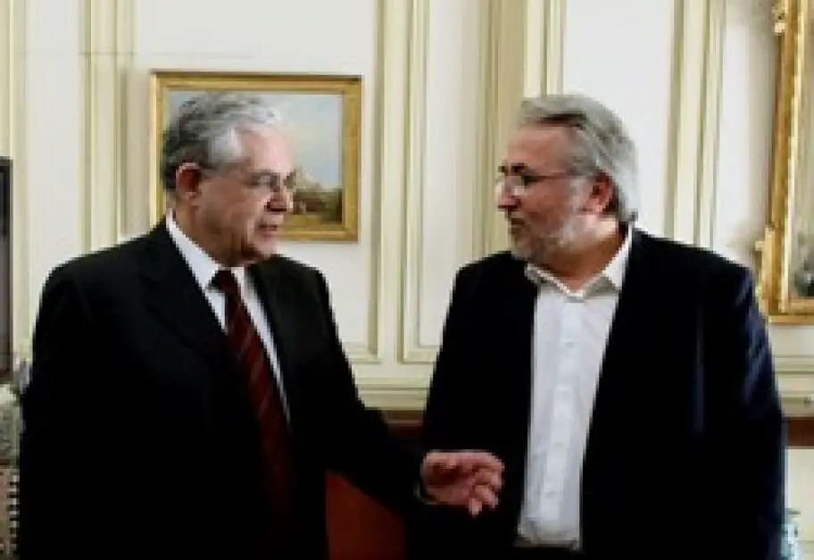 In zehn Tagen kommen die Vertreter der Troika aus Europäischer Kommission, Europäischer Zentralbank und des Internationalen Währungsfonds erneut nach Athen, um die Einhaltung getroffener Vereinbarungen zu überprüfen. Das wird aber ohne die Unterstützung vor allem der Gewerkschaften kaum möglich sein. Papadimos appellierte deshalb am Donnerstag nach einem Treffen mit Vertretern der Arbeitnehmer: „Wir müssen wenig geben, um nicht viel zu verlieren". (Griechenland Zeitung / eh, Foto: Eurokinissi - Die Aufnahme zeigt Premier Papadimos, l., mit dem Gewerkschaftsvorsitzenden Panagopoulos, GSEE)