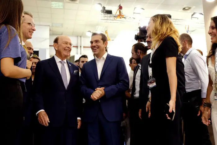 Foto (© Pressebüro des Premierministers). Ministerpräsident Alexis Tsipras (r.) und der Handelsminister der Vereinigten Staaten Wilbur Ross im Rahmen der Internationalen Messe Thessaloniki. Foto (© Pressebüro des Premierministers). Ministerpräsident Alexis Tsipras (r.) und der Handelsminister der Vereinigten Staaten Wilbur Ross im Rahmen der Internationalen Messe Thessaloniki.