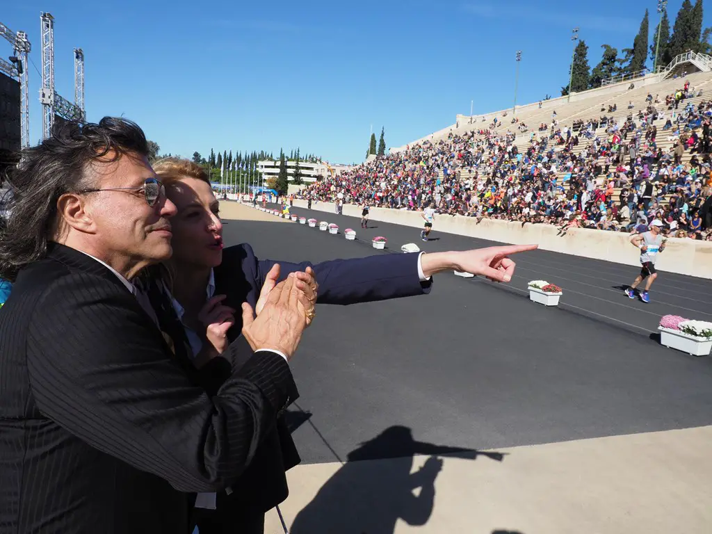 Der Bürgermeister von Marathon Ilias Psinakis beim 34. Marathonlauf