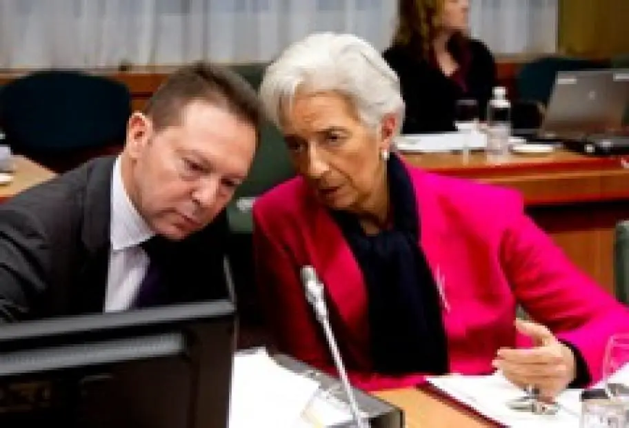 Unsere Abbildung zeigt Finanzminister Jannis Stournaras mit der Chefin des Internationalen Währungsfonds, Christine Lagarde, beim Treffen der Eurogruppe am Montag in Brüssel. (Griechenland Zeitung / eh, Foto: Eurokinissi.)