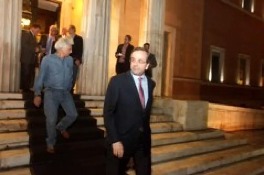 Unser Bild zeigt Samaras nach den Beratungen mit seinen