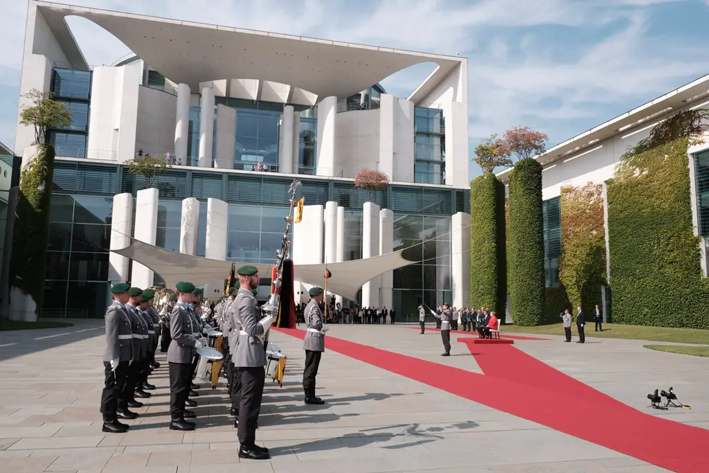 Sie freue sich auf „die bilaterale Zusammenarbeit, aber auch auf die Zusammenarbeit innerhalb der EU, wo wir auch an vielen Stellen gemeinsame Überzeugung teilen“. Dazu zähle etwa die ökonomische Reformagenda.