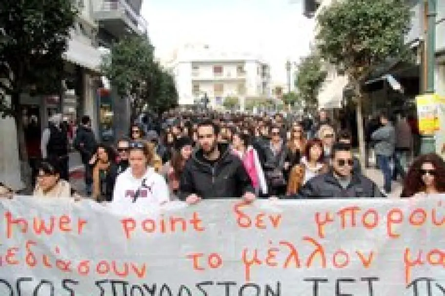Um 14.00 Uhr protestieren Eltern von Schulkindern in Athen, Piräus und auf der Insel Kefalonia für eine bessere Bildung ihrer Kinder. Sie fordern, dass nicht besetzte Lehrstellen unverzüglich besetzt werden, dass weniger Schüler in den Klassen sitzen sowie die Instandhaltung der Schulgebäude und das Verteilen kleiner Mahlzeiten an die Schüler. Die Lehrergewerkschaft OLME hat für den kommenden Samstag um 12.00 Uhr zu einer Demo vor den Propyläen an der Athener Panepistimiou Straße aufgerufen. Damit wollen sie u. a. auch darauf aufmerksam machen, dass viele Schulen kein Heizöl mehr haben. Am Samstag werden zudem um 14.00 Uhr Schüler der Musikschulen Attikas ein Protest-Konzert am Syntagma-Platz vor dem Parlament durchführen. (GZeh, Foto: Eurokinissi. Unsere Aufnahme zeigt demonstrierende Studenten am Mittwoch in Pyrgos, Peloponnes.)