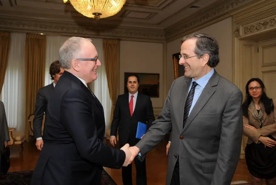 (Griechenland Zeitung / eh, Foto: Eurokinissi. Die Aufnahme zeigt Samaras, r., am Dienstag während eines Treffens mit dem holländischen Außenminister Frans Timmermans am Dienstag in Athen.)