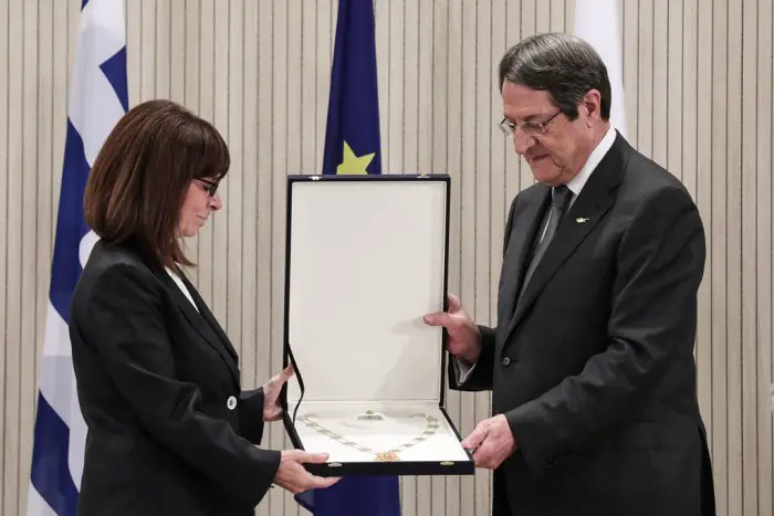 Feierlich empfangen wurde Sakellaropoulou von ihrem Amtskollegen Nikos Anastasiadis. Beide verliehen ihrer Hoffnung Ausdruck, dass die Zypernfrage unter den richtigen Voraussetzungen gelöst werden könne. Mit diesem Ziel könnten Gespräche fortgesetzt werden, die im Juli 2017 im schweizerischen Crans-Montana unterbrochen worden waren, stellte die hellenische Präsidentin fest. Es handelt sich um ihren ersten Staatsbesuch seit ihrer Amtsübernahme im Frühjahr. (Griechenland Zeitung / eh)