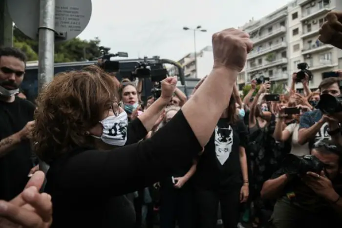 Unser Foto (© Eurokinissi) entstand am Mittwoch (7.10.) auf der Athener Alexandras-Avenue nach dem Gerichtsurteil gegen die faschistische Partei Chryssi Avgi. Auf dem Foto zu sehen ist die Mutter von Pavlos Fyssas, der von Anhängern der Partei im September 2013 ermordet worden ist. Unser Foto (© Eurokinissi) entstand am Mittwoch (7.10.) auf der Athener Alexandras-Avenue nach dem Gerichtsurteil gegen die faschistische Partei Chryssi Avgi. Auf dem Foto zu sehen ist die Mutter von Pavlos Fyssas, der von Anhängern der Partei im September 2013 ermordet worden ist.