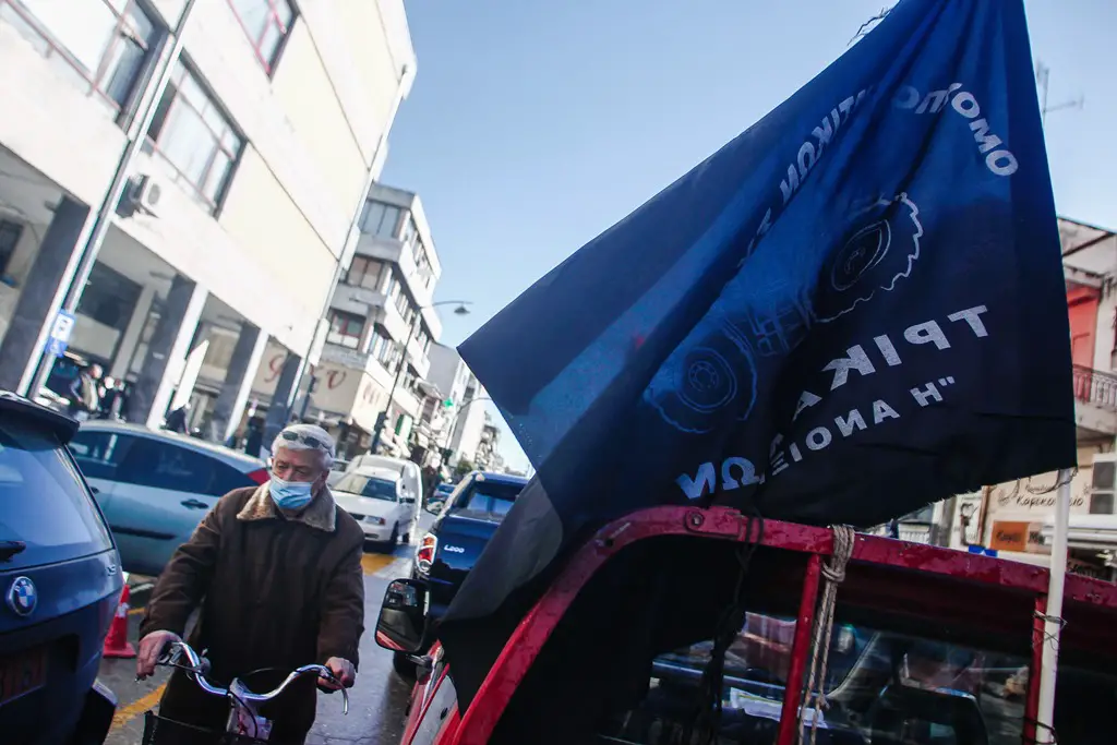 Die Landwirte der mittelgriechischen Stadt Trikala plädieren für „direkte Lösungen“. Am Montag (25.1.) führten sie im Zentrum der Stadt eine Protestaktion mit ihren landwirtschaftlichen Fahrzeugen durch, an die sie schwarze Fahnen gehängt hatten.