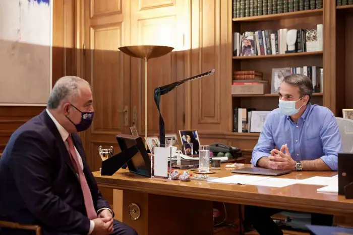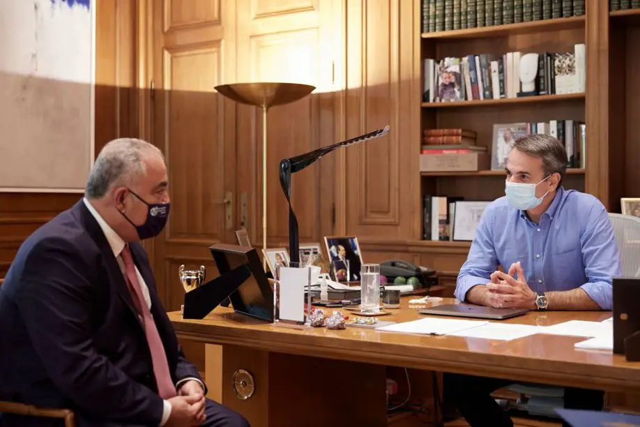 Um sich über die Unterstützung von Unternehmen nach den verheerenden Waldbränden im August in vielen Landesteilen ein Bild zu machen, traf sich am Dienstag (24.8.) Premierminister Kyriakos Mitsotakis mit dem neuen Präsidenten der Griechischen Industrie- und Handelskammer (EVEA) Jannis Chatzitheodosiou.