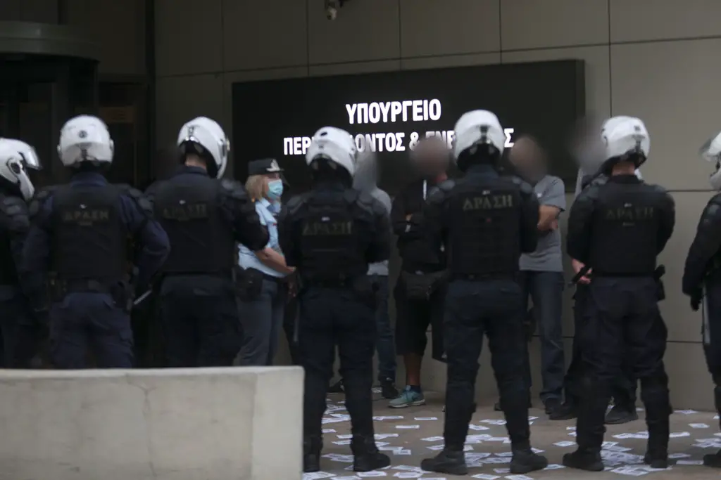 „Staat Brandstifter“. Mit diesem Slogan stürmten am Mittwoch (7.9.) 24 Mitglieder der anarchistischen Organisation Ruvikonas das Gebäude des griechischen Umweltministeriums in der Mesogion Avenue in Athen.