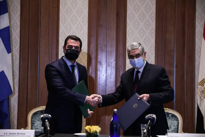 Am Donnerstag (14.10.) unterzeichneten der griechische Energieminister Kostas Skrekas und sein Amtskollege aus Ägypten Mohamed Shaker eine bilaterale Absichtserklärung (Memorandum of Understanding) für eine künftige Elektrizitätsleitung zwischen beiden Ländern durch das östliche Mittelmeer.