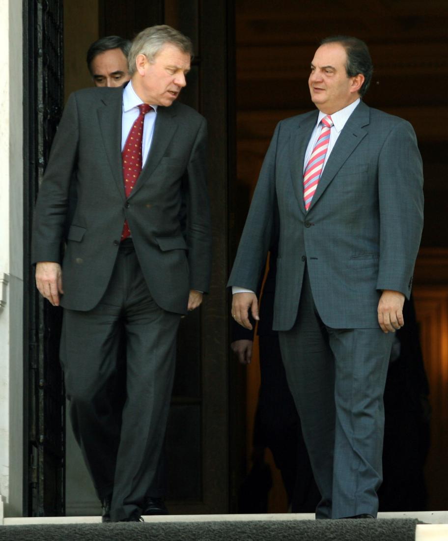 NATO-Generalsekretär Jaap de Hoop Scheffer mit Premier Kostas