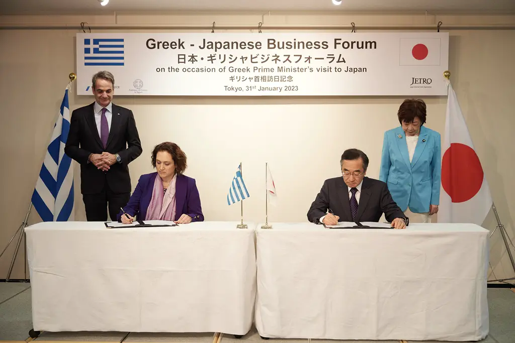 Getroffen hatte sich der Regierungschef mit dem Kronprinzen Akishino, seinem japanischen Amtskollegen Fumio Kishida und anderen hochrangigen Persönlichkeiten. Gegenüber japanischen Unternehmern und Investoren stellte Mitsotakis fest, dass Griechenland eines der beliebtesten Länder für Investitionen im Südosten Europas sei. Beschlossen wurden außerdem Kooperationen in der Seefahrt, da beide Länder eng mit dem Meer und der Schifffahrt verbunden sind. Zusammenarbeiten wollen Athen und Tokio zudem in den Bereichen Verteidigung, Sicherheit, Energie und Kultur.