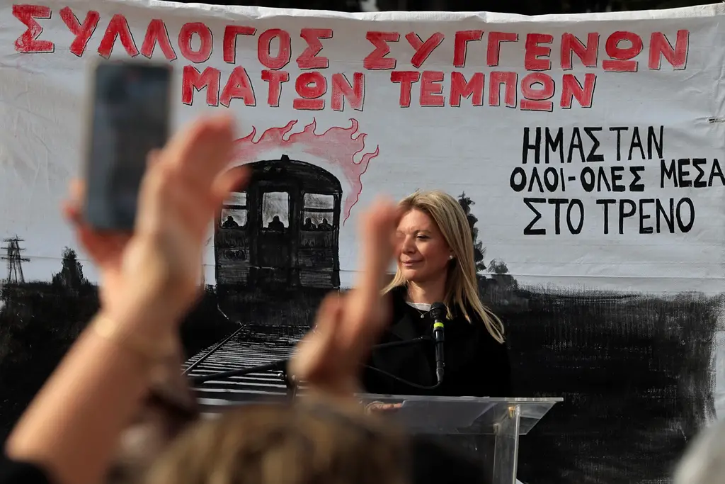 Maria Karystianou, die ihre Tochter bei dem Unglück verloren hatte, zeigte sich angesichts der massenhaften Beteiligung der Bevölkerung an den Protesten sehr berührt. Sie ist gleichzeitig Vorsitzende des Vereins der Hinterbliebenen der Opfer. Der Regierung und der Justiz warf sie Gleichgültigkeit vor. Sie fordert eine „sofortige Untersuchung der Explosion der illegalen Chemiefracht und des Feuers, bei dem unsere Liebsten bei lebendigem Leib verbrannten“. Außerdem forderte sie den Kandidaten für das Amt des Staatspräsidenten Konstantinos Tasoulas dazu auf, noch vor seiner Amtsübernahme Stellung zu beziehen. Premierminister Kyriakos Mitsotakis warf sie vor, nach seiner Amtsübernahme im Jahr 2019 über die desolate Lage bei der Griechischen Bahn informiert gewesen zu sein. Dieser habe jedoch nichts dagegen unternommen. Was die Ermittlungen der Unfallursache angeht, so sprach sie von einer „Daten-Verschwinde-Operation im Mafia-Stil“.
