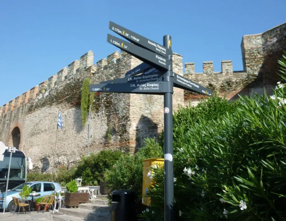 Mit neuen Lichtern angestrahlt werden die Mauer im nordwestlichen und im nordöstlichen Teil der Akropolis als auch das Eptapyrgio. In einer späteren Phase soll auch die westliche Mauer von Strahlern erfasst werden. Der Regierungschef ergänzte, dass es sich seit 1988 um ein UNESCO-Weltkulturerbe handelt.