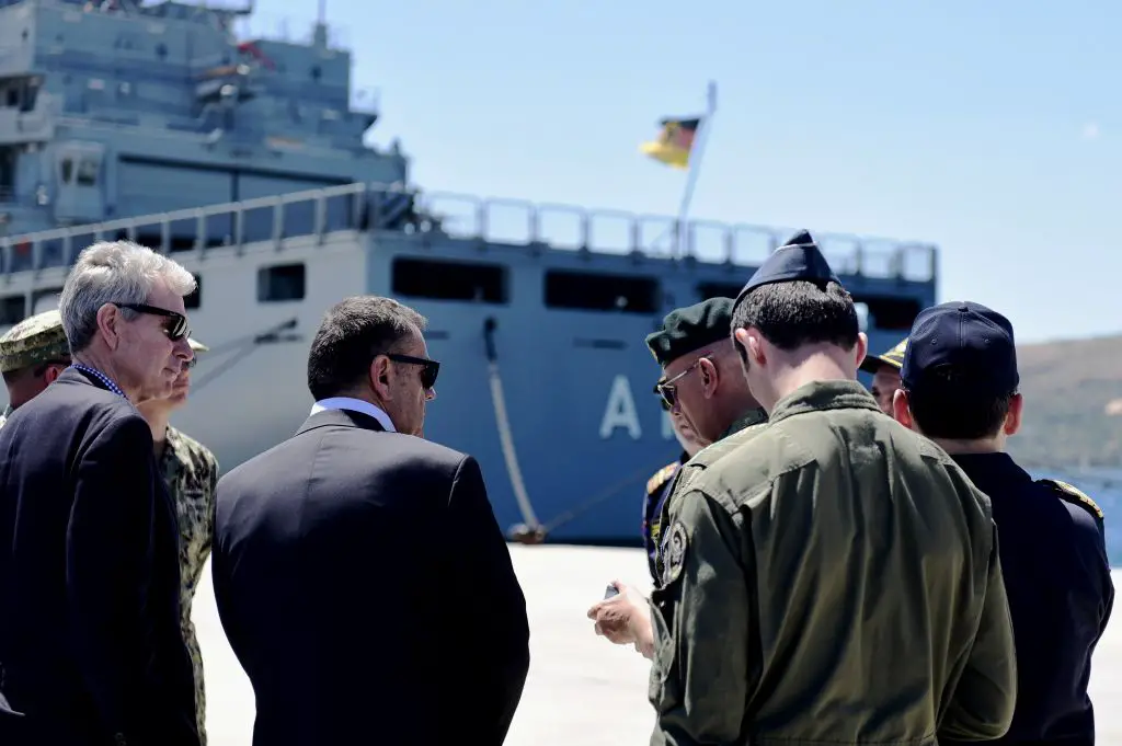 Auch Schiffe der deutschen Marine gehen im Hafen von Souda vor Anker.