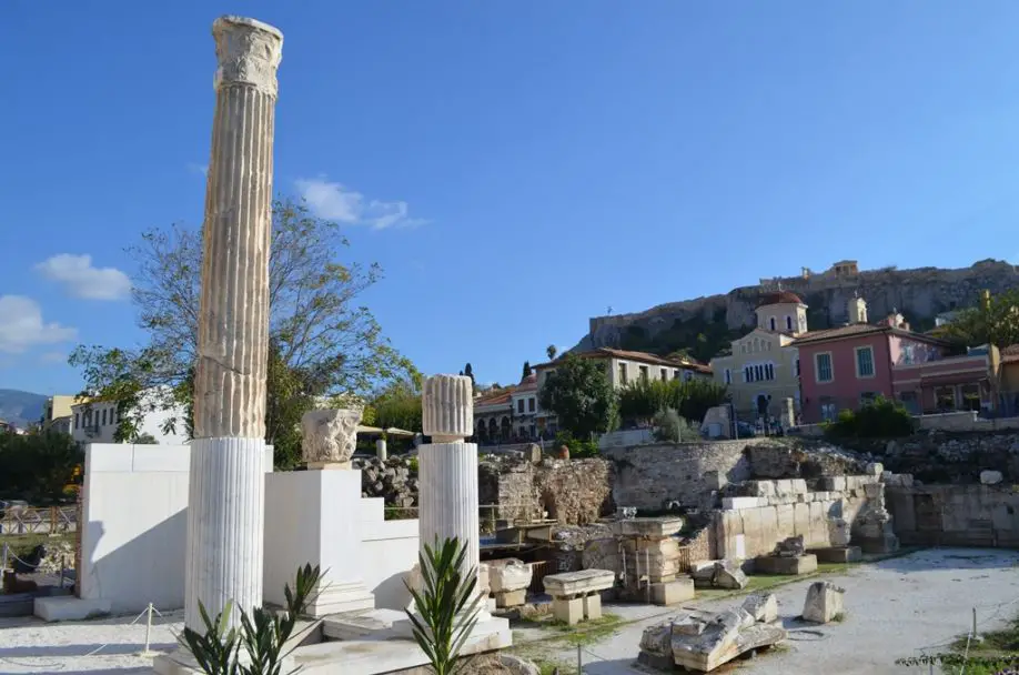 Unser Foto (© Jan Hübel / Griechenland Zeitung) zeigt den Römischen Markt in Athen; im Hintergrund die Athener Akropolis.