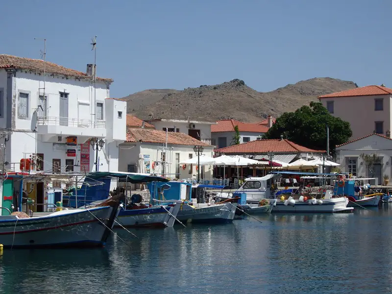 Die Unterbringung in Varos bietet sich gut an, um von dort Tagesausflüge zu machen: zur Hauptstadt Myrina im Westen, zur den Sanddünen im Norden und zu den kleinen Binnenseen, Chortarolimni und Aliki, im Osten. Ebenso sind die archäologischen Stätten Ifestia, Kaveirio und Poliochni von hier aus gut erreichbar. Genauso wie die Kriegsfriedhöfe Moudros und Portianou.