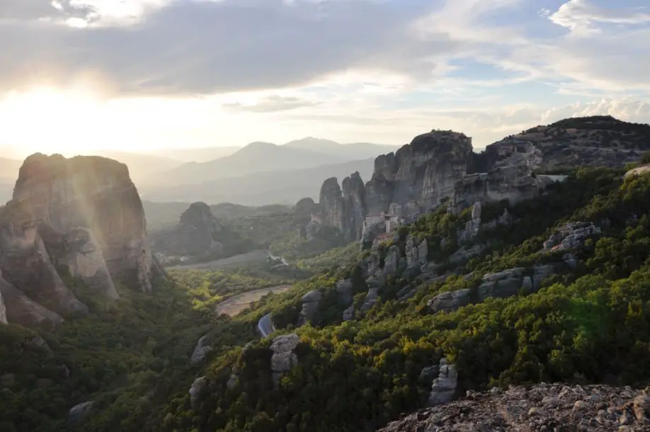 Der Blick auf die Meteora-Klöster ist atemberaubend. Die Klöster sind auf hohen Sandsteinfelsen gebaut und bei dunstiger Luft scheint es, als ob sie über dem Pindos-Gebirge schwebten.