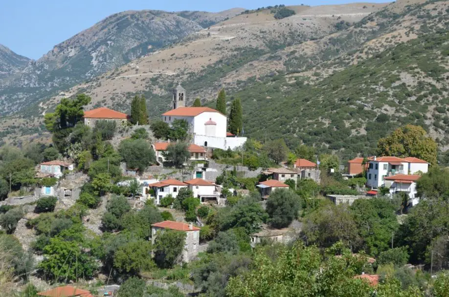 In westlichen Teil Griechenlands weht ein starker Wind, auf dem Festland eine leichte Brise. Das Foto zeigt das Dorf Plaisio in Epirus.