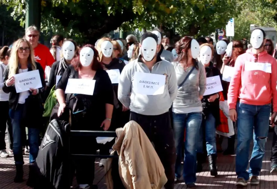 Unser Foto (© Eurokinissi) zeigt eine Protestkundgebung von Verwaltungsangestellten im November 2014 gegen Entlassung.