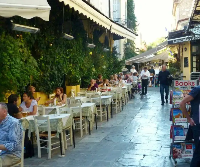 Unser Foto (© Eurokinissi) zeigt einen Lichtblick: Der Tourismus eilt in diesem Jahr einem neuen Höhepunkt entgegen; auch in der Athener Plaka gibt es in diesen sonnigen Herbsttagen noch viele Touristen, die mit ihrem Geld einen Teil zur Belebung der griechischen Wirtschaft beitragen.