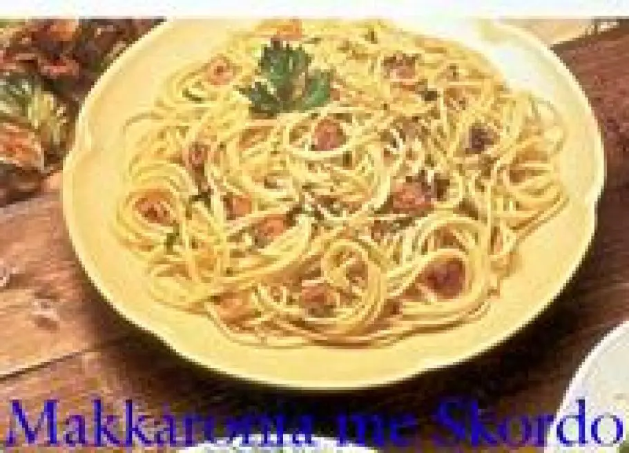 In einem kleinen Topf 3 EL Öl mit den 3 kleingeschnittenen Knoblauchzehen und etwas Salz geben, dünsten, bis der Knoblauch Farbe annimmt und unter Zugabe von feingewiegter Petersilie, 1 EL Öl und schwarzem Pfeffer über die Makkaroni gießen.