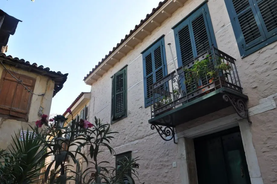 Unser Foto (© Griechenland Zeitung / Rebecca Hürter) zeigt eine Hausfassade im Stadtteil Plaka.
