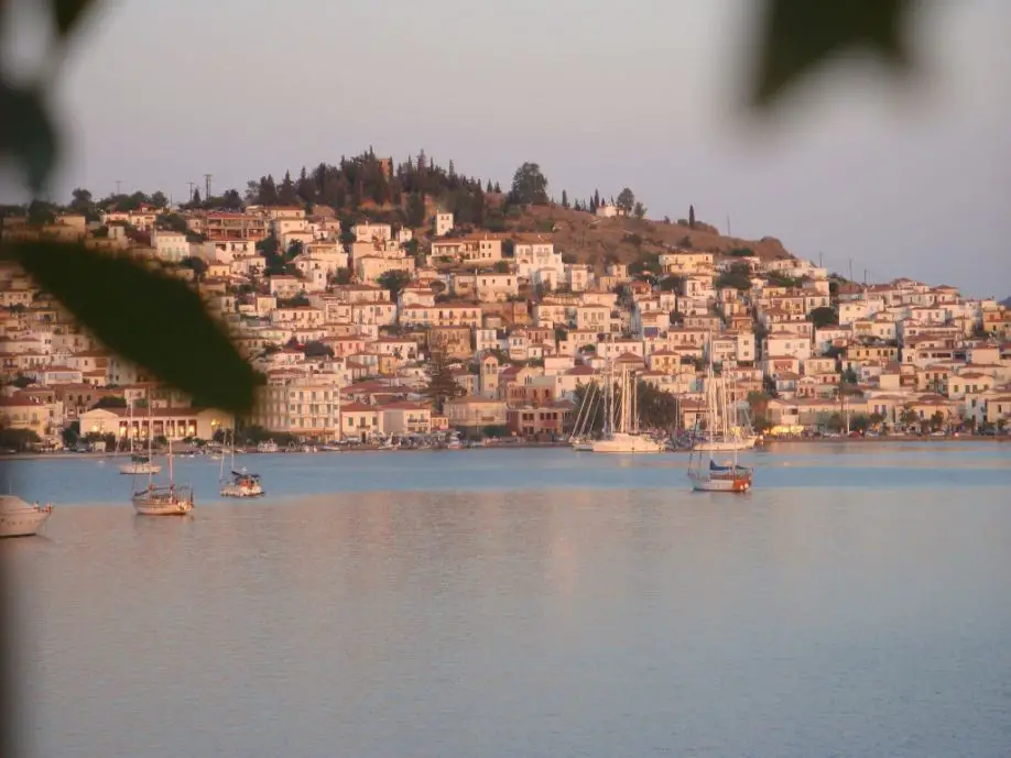 Von Galatas aus könnte man den Eindruck gewinnen, die Uferfront der anheimelnden Häuser von Poros sei schier unendlich. Und in der Tat rechtfertigt die Uferstraße, die während der Hauptsaison abends für den Autoverkehr gesperrt wird, hier die Bezeichnung Flanier-Meile. Zwischen Café-Bars und Tavernen sind kleine Geschäfte eingestreut. Eine kleine Konditorei fertigt dort eine eigene Inselschokolade, die andere widmet sich einem von ihr entwickelten Marzipan mit Jasminaroma und der Mischung leckerer Liköre. Immer wieder unterbrechen winzige Plätze die Linie der Uferhäuser – vermutlich einst geschaffen, um dort im Winter kleine Boote sicher an Land unterzubringen. Im Nordwesten des Städtchens ragt seit 1927 stolz ein markanter Uhrturm auf einem Stadthügel auf. Wie anderswo in Griechenland auch sollte er nach dem Abzug fast aller Türken aus Hellas wohl verkünden, dass man nun ganz in Europa angekommen sei.