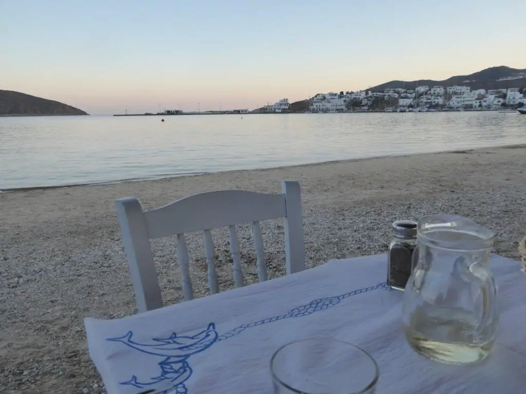 Eine Taverne in der Hafenbucht Livadi