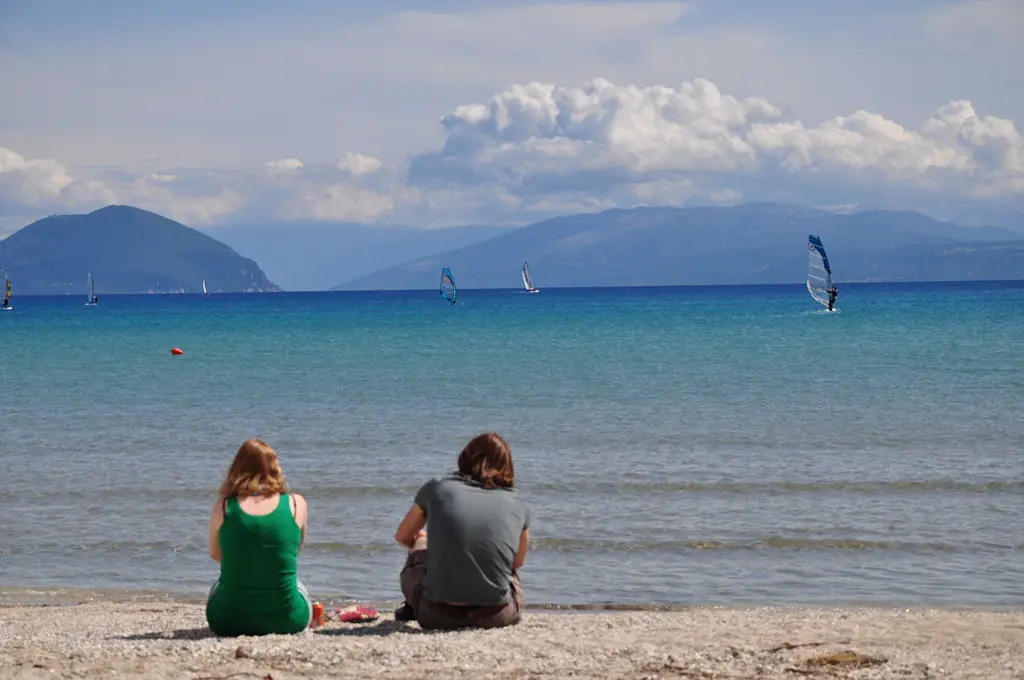 Lefkas ist die ideale Insel für Auto- und Motorradurlauber. Eine Art Brücke führt mautfrei hinüber. Was lockt, sind vor allem die langen Strände unter den hellen Steilküsten am Ionischen Meer, die die alten Griechen zur Namensgebung „Die Weiße“ veranlassten. Grün ist die Insel aber auch – und in der Inselhauptstadt ausgesprochen bunt.