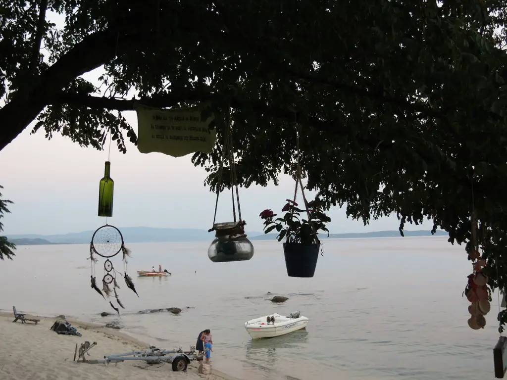 Aushubarbeiten ganz anderer Dimension erhitzen die Gemüter im wenige Kilometer entfernten Ierissos. Im kleinen Städtchen und in den benachbarten Küstendörfern zeugen schwarze Transparente vom Protest gegen den geplanten Goldabbau im Binnenland. Auch in Develiki, einer versteckt gelegenen Strandsiedlung ist die Meinung zu dem Thema eindeutig. „Wir sagen Nein zum Gold“, heißt es in einer pittoresken Taverne direkt am langgezogenen Sandstrand. Das Lokal hat wenig mit den üblichen Gaststätten in den touristischen Zentren gemein. In Develiki erinnert vieles an die längst vergessene Hippie-Zeit. Traumfänger hängen in den Bäumen. Filmmusik der 60er Jahre wird gespielt. Der junge Wirt outet sich als Fan des deutschen Fußballvereins Sankt Pauli und seiner links-alternativen Anhängerschaft.