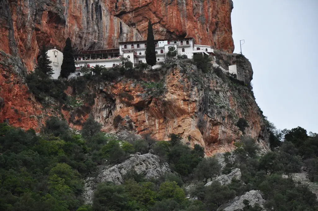 Poulithra ist da das wohl interessanteste Ziel, denn ganz in seiner Nähe liegt der große Binnenort Leonidio mit über 3.000 Bewohnern vor eisenroten Felswänden am Ausgang der Dafnon-Schlucht. Seine Auberginen gelten als die besten ganz Griechenlands – und der traditionelle Dialekt der Bewohner als ein Kleinod: Man pflegt wieder das Tsakonische, das als Relikt eines 3.000 Jahre alten dorischen Dialekts gilt. „Kaour ekanate!“ steht denn auch als Willkommensgruß auf einem Schild am Ortseingang statt des Neugriechischen „Kalos ilthate!“ Auch architektonisch hat Leonidio seine Besonderheiten. Typisch sind Natursteinhäuser mit ungewöhnlich dicken Mauern und zumeist farbig umrandeten Fenstern. Die Nähe der fotogenen Felswände nutzt man neuerdings in Leonidio auch für eine Trendsportart: das Rock Climbing. Nirgendwo auf dem griechischen Festland gibt es ein besseres Angebot an erschlossenen Routen als hier. Zur bedeutendsten Sehenswürdigkeit der Region muss man allerdings nicht klettern: Eine Straße führt bis zum Kloster Elonis, das – auf den ersten Blick unerreichbar scheinend – im 16. Jahrhundert mitten in eine rote Felswand hineingebaut wurde.
