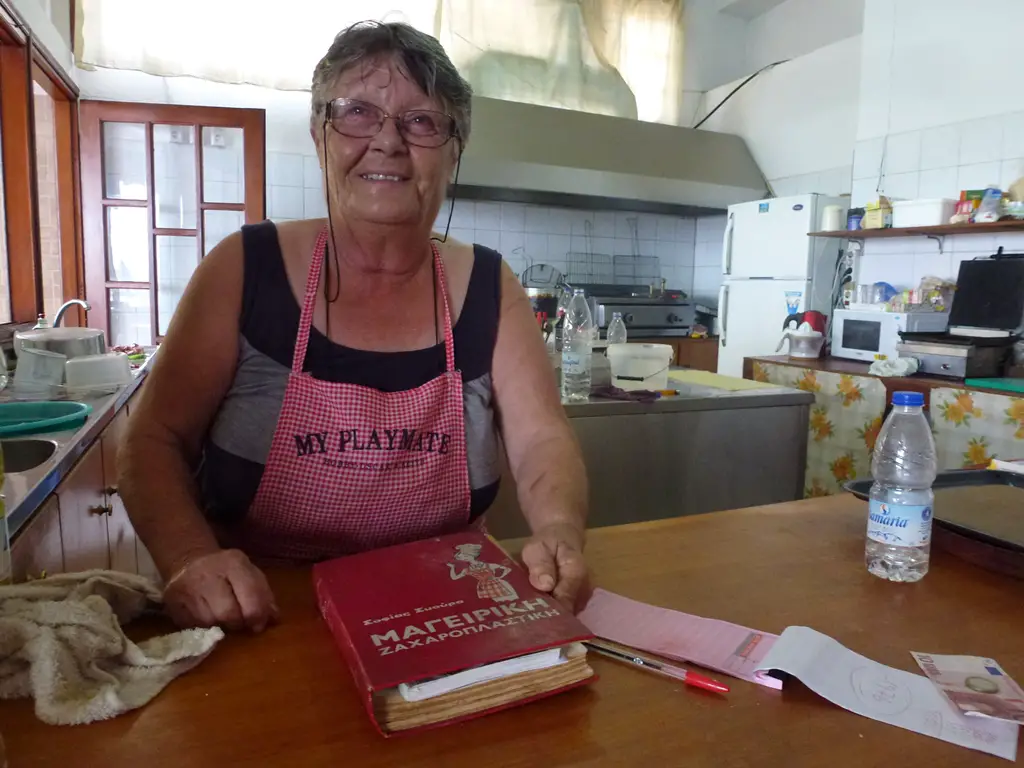 Litsa und Jorgos stammen aus Vatsianá, einem Dorf auf einer Hügelkuppe im südöstlichen Inselinneren, wo ihre Familien von der Landwirtschaft lebten, bevor Litsa 1980 mit ihrem Mann in den Hafenort zog, um dort die Taverne zu eröffnen. Die Fotos ihrer Mutter beim Spinnen und Brotbacken und ihrer Großeltern hängen an der Wand. Heute gibt es in Vatsianá mehr verfallene als bewohnbare Häuser und mehr Gräber als Einwohner. Waren es 1950 noch hundert, so sind es heute gerade mal neun Personen, die hier leben: Der Pfarrer der Insel mit seiner Frau, zwei alte Witwen und eine junge Familie: Nikos und Efi mit ihren drei Kindern. Die beiden älteren sind zwei der drei Schulkinder der Insel. Als drittes drückt mit ihnen ein Mädchen aus dem beliebten Ferienort Sarakíniko in der großen Sandbucht an der Inselnordküste die Schulbank. Dort gibt es auch Tavernen und Unterkünfte.