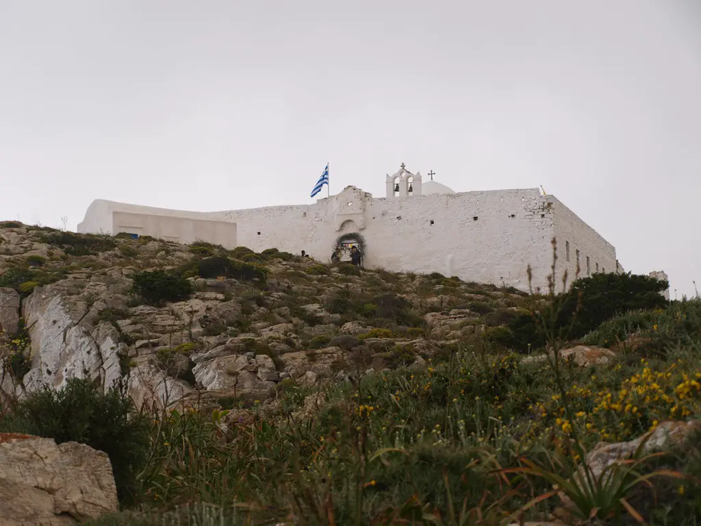Das weiße Kirchlein Panagia Pantochara blickt von seinem Fels oberhalb der Ortschaften von Sikinos und unterhalb des Inselklosters hinaus aufs weite, lichte Meer. Dass es hier auf der Insel Sikinos stehen sollte, war der Wunsch des großen, 1979 mit dem Literaturnobelpreis geehrten griechischen Poeten Odysseas Elytis. Auf dieser Insel, die in einigen seiner Gedichte vorkommt und von der Elytis meinte, sie habe sich besser als andere ihre Authentizität bewahrt, wollte er der Gottesmutter eine Kirche weihen – für sein Leben und Werk. Nachdem er 1996 verstorben war, verstand seine Gefährtin Ioulita Iliopoulou diesen Wunsch als Vermächtnis und sorgte dafür, dass er zur Ausführung kam. 2011 wurde die kleine Kirche eingeweiht. Sonnengetränkt und strahlendweiß steht sie vor dem klaren, transparenten Licht der Ägäis wie ein Stein gewordenes Gedicht des großen Poeten.