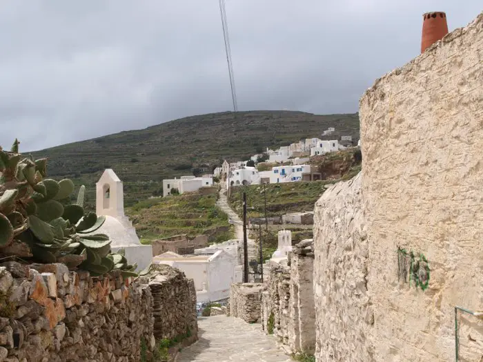 Das rechts, westlich des Sattels gelegene Chora ist eine ehemalige venezianische Wehrsiedlung und wird auch Kastro genannt.