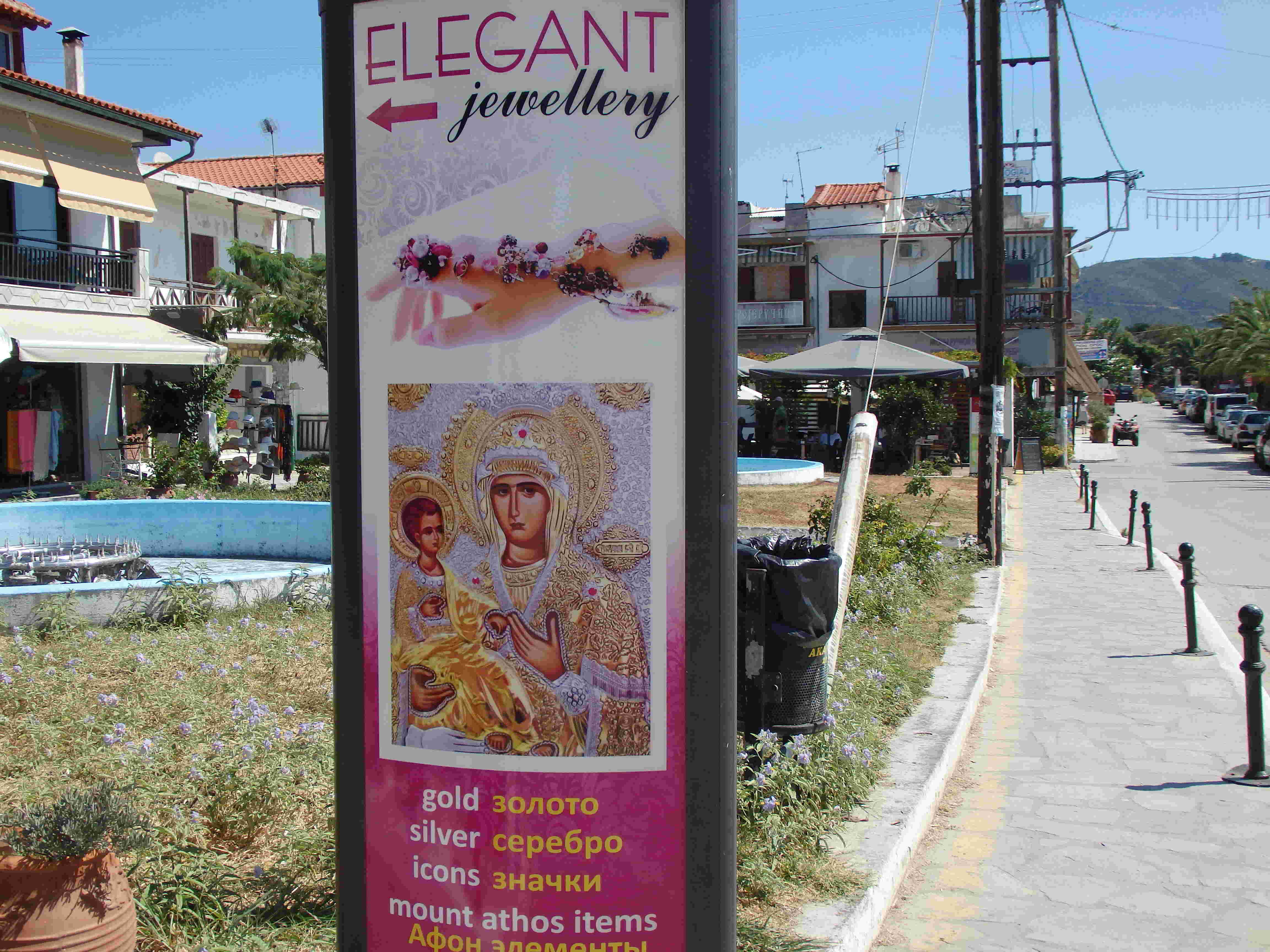 Und genau deswegen ist das Geschäft mit der Ikone sicher keine touristische Einnahmequelle wie jede andere. Aber um eine Ikone zu erwerben, sollte man zumindest vorher in der Ikonenstadt Ouranoupolis am besten erst einmal herausfinden, ob es den passenden Heiligen für einen selbst überhaupt gibt.