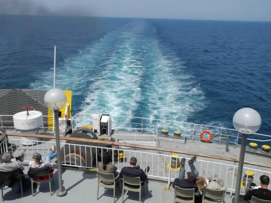 Gortyn ist von Heraklion, Kretas Hauptstadt, in südlicher Richtung leicht zu erreichen. Aber erstmal muss man nach Heraklion und überhaupt nach Griechenland kommen. Die meisten Besucher erreichen das Land per Flugzeug. Wir nicht – wir sind zunächst über Nacht mit dem Zug aus München nach Venedig gereist. Vor der Abfahrt des Schiffs war noch eine Menge Zeit bis zur Abfertigung – Zeit zum Plaudern mit den wenigen anderen Fuß-Passagieren und den zahlreichen Motorradfahrern aus Regionen nördlich der Alpen. Dank reichlicher Verspätung der Anek-Fähre konnten wir anschließend zwei volle Nächte (statt nur einer) auf dem Schiff von Venedig nach Patras verbringen – erfreulich für Leute wie uns, die gern über Land und Meer anreisen. Fähren-Fahrten sind viel ungezwungener als Kreuzfahrten und ohnehin erlebnisreicher als Fliegen.
